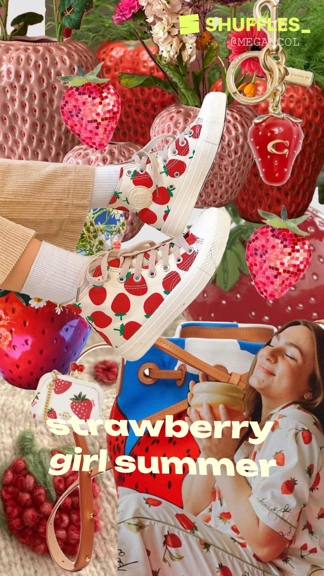 Last spring, I was at Target and couldn’t resist a little strawberry outfit for my friend Kirsten’s baby girl. “It’s going to be a strawberry girl summer,” I remember writing in the card. I can already tell that one of my joys in life is going to be that little girl’s “cool auntie Megan” who keeps her a full calendar year ahead of the other lowkey hipster little Gen Alphas. At work, [redacted], I declared “Florals for Spring is out. Romanticized fruit is in.” and I stand by that ten toes down. Check out this Pinterest board for more inspo & brands who are partaking.